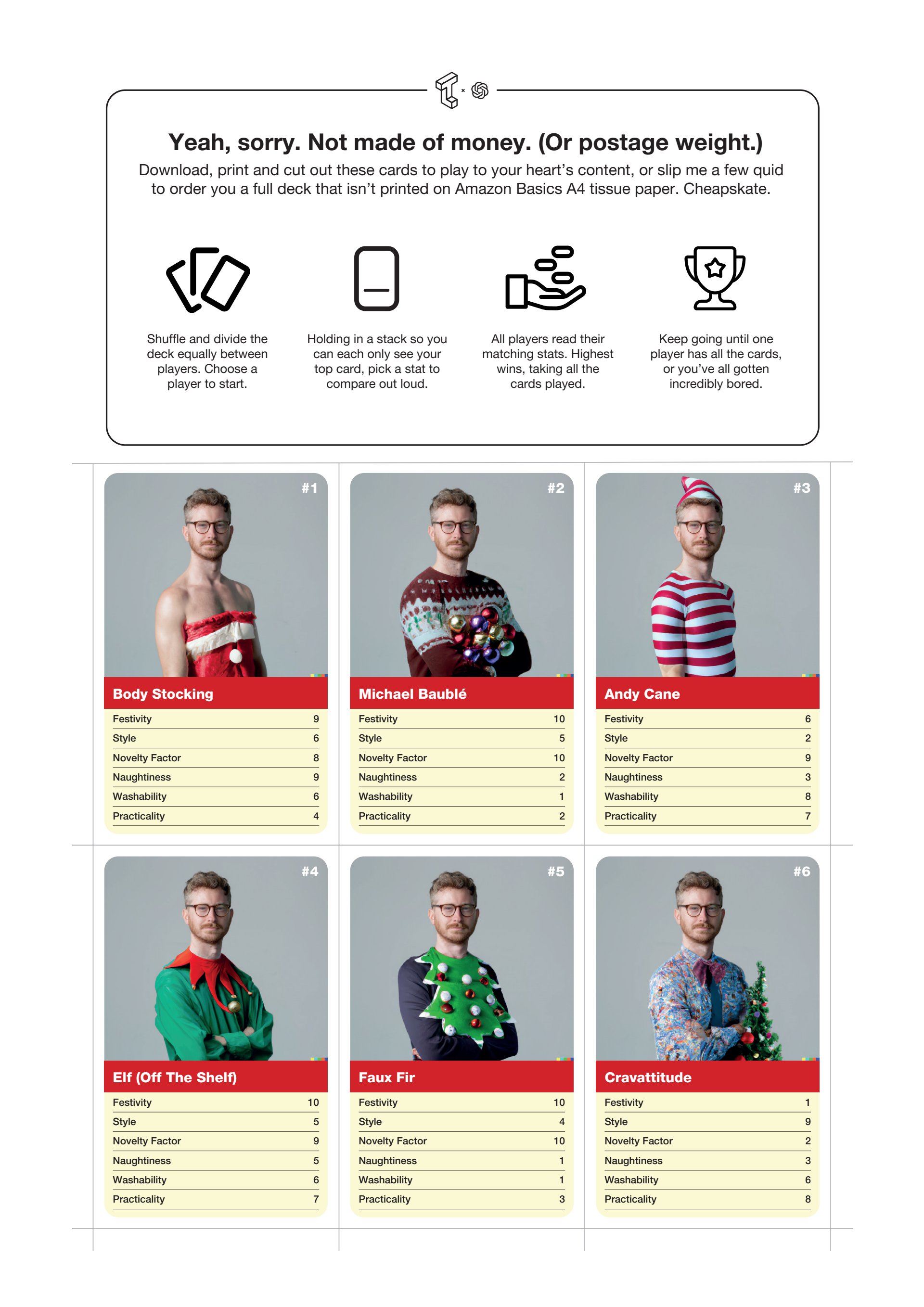 This was 2022's effort: a fully playable 50-card deck of DallE-2 trump cards that were divvied up into random sets of 10 and tucked into every envelope, with the full set available on a download link inside.