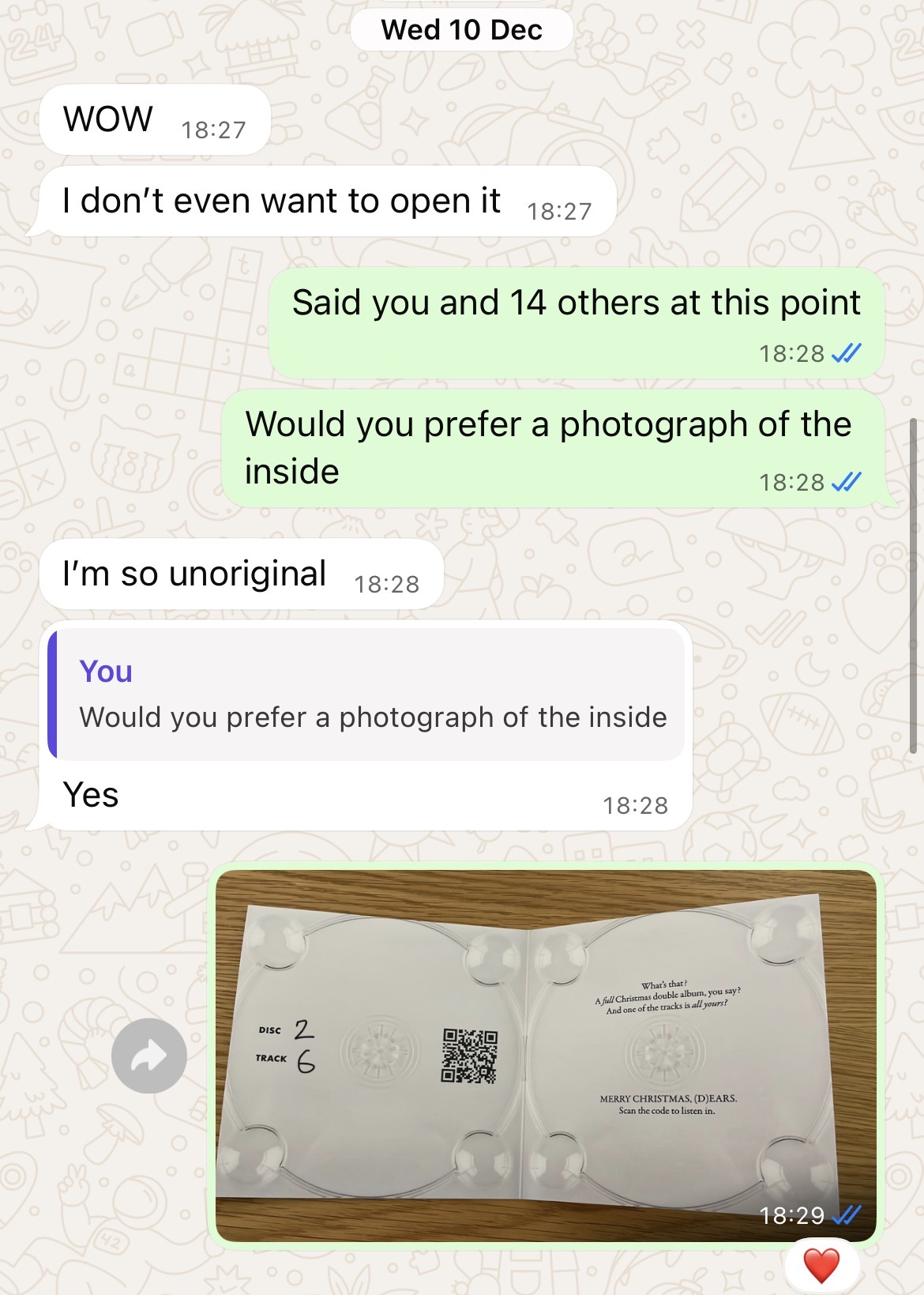 In 2025, the annual Christmas card jumped yet another shark with a full 28-track album personalised to family and friends. Delivered in a cellophane-wrapped Christmas card that 80% of recipients 'didn't want to spoil because of the nice stickers', making it an actual festive miracle that I'd put a second QR code on the back lest anybody have actually noticed it was playable. And that I'd only melted part of my rug sealing them.